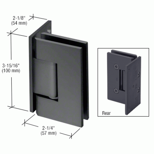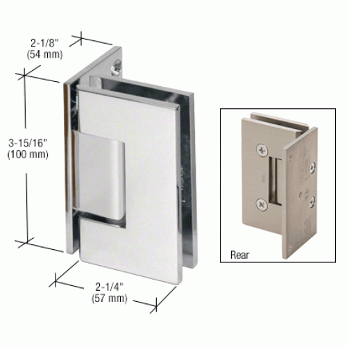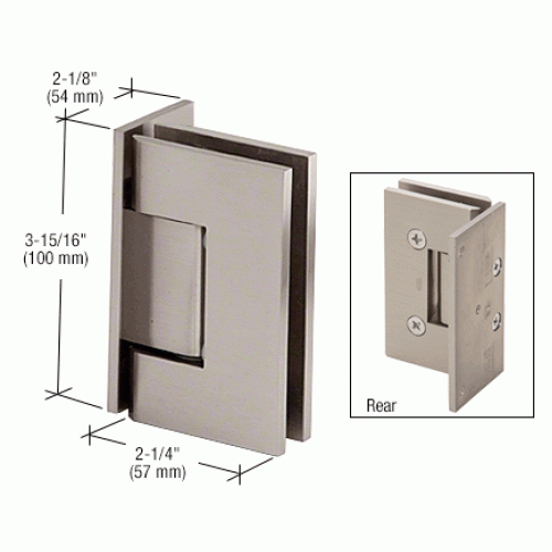 This hinge is available in several beautiful finishes*. CRL Vienna Hinges are the solution for wider, heavier doors that traditional hinges are not strong enough to support. Two strategically placed steel pins inside the hinge provide template options, and satisfy two schools of thought for mounting shower door hinges. For the safety of "mouse-ears" type cut-outs, the two steel pins should be left in place. This allows the Vienna Hinge to be used with it's own CRL "mouse-ears" cut-out. On the other hand, to enable increased adjustability, the two pins can be removed. This allows the Vienna Hinge to fit it's own CRL rectangular shaped, square cornered cut-out. In some cases, it will also fit competitive rectangular shaped, square cornered cut-outs. Each Vienna Hinge contains a Reversible Pivot Pin. One side of the Pin is marked at 90 degree. The opposite side of the Pin is marked 85 degree. Standard Vienna Hinges come with the 90 degree side activated. Pre-Set Models come with the Pin pre-set for 85 degree (5 degree tighter closure into shower interior). The Pin can be rotated (not flipped upside down) to activate the other side.